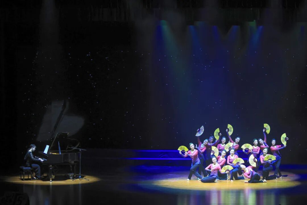 “剧目展示”环节汇聚多元舞蹈风格,再度点燃全场。拉丁舞《绽放》《燃》以奔放节奏和饱满情绪展现青春活力;中国舞《晨光曲》用极致的细腻编排还原老上海弄堂生活百态,引得观众凝神屏息、深深动容;舞蹈与模特《一花一剑》融合新中式服饰与折扇元素,步履从容、仪态典雅,彰显文化自信;《陶醉了》描绘少女戏水扬帽、人与自然相融的优美画面;《额尔古纳河》则以写意手法再现蒙古女性的端庄与河流的宁静浩荡,引发无尽遐思。