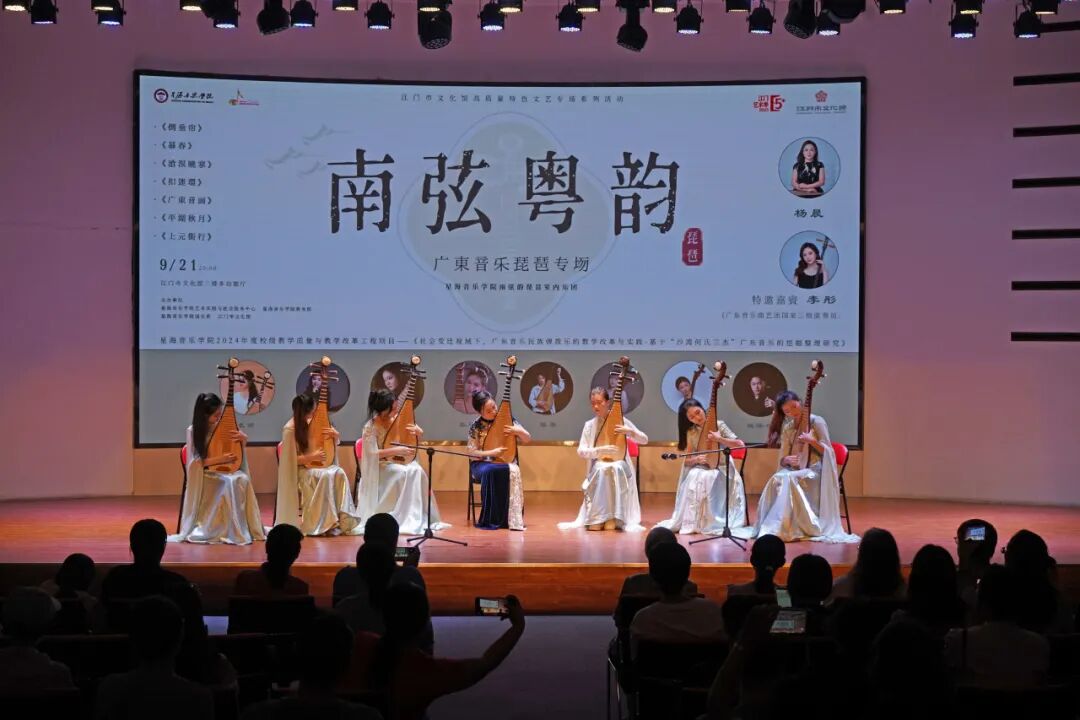 2025年9月21日晚 8 点,江门市文化馆二楼多功能厅内,“南弦粤韵”广东音乐琵琶专场在悠扬琵琶声中缓缓展开。星海音乐学院 “南弦韵” 琵琶室内乐团,以一场岭南味十足的音乐盛宴,让观众沉浸其中。