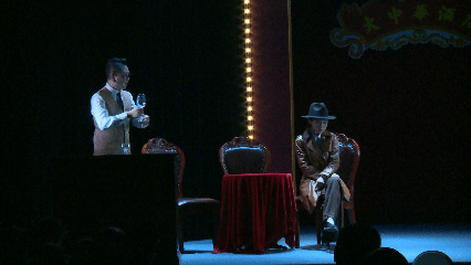 还没走进剧场,经过骑楼、老屋、巷道,你仿佛穿越时光隧道,走进四十年代的街区。踏进大院:你可见到热情的商贩、善良的卖花女、质朴的车夫……哦,还有过来跟你接头的特工,记得对上暗号,否则就拿不到船票了!靓女们当然要注意提防,角落里,竟然有……不剧透!走入1942的香港大中华酒店,在酒吧随着找个座位坐下,昏暗的灯光、老式留声机流淌出的《夜来香》、空气中若有似无的白玉兰花香气息……舞台边界被刻意模糊,特务从你身边匆匆走过,子弹上膛的声响,伴随“砰”的一声,那硝烟的气味,就在你的身边弥漫。