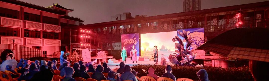 当晚,图书馆花园化作天然舞台,亭台楼阁间,浪花造景为这份古韵注入了灵动的活力。五彩的灯光在亭台楼阁间跳跃,为元宵之夜披上了一层梦幻的薄纱,也为浪花镀上了一层绚丽的华彩,营造出“乘风破浪”的意境。