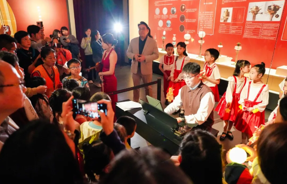 值得一提的是,博物馆在新春期间,还回应市民游客的热烈要求,再次进行夜间开放,策划了一场以光为主题的博物馆之夜活动:“照亮时光之美”主题博物馆之夜。博物馆之夜活动于19:30启幕,小提琴演奏《一步之遥》《爱的致意》率先营造唯美氛围;江门市童声合唱团献唱《彩云追月》《真的爱你》《灯火里的中国》,赢得阵阵掌声;魔术表演以奇幻光影点燃现场热情。随后观众步入展览聆听历史回响,油灯展览展区内更有多场艺术快闪:芭蕾舞《关不住的女儿》轻盈灵动;男高音宣崟、女高音郭思敏及二重唱组合分别在油画与场景前演绎《爱的甘醇》《费加罗的婚礼》《风流寡妇》经典咏叹调,实现“歌剧+维多利亚时期油灯”的跨界对话。