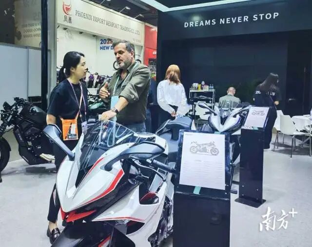 广交会,大冶摩托新款产品受到外国客商喜爱。何榕摄