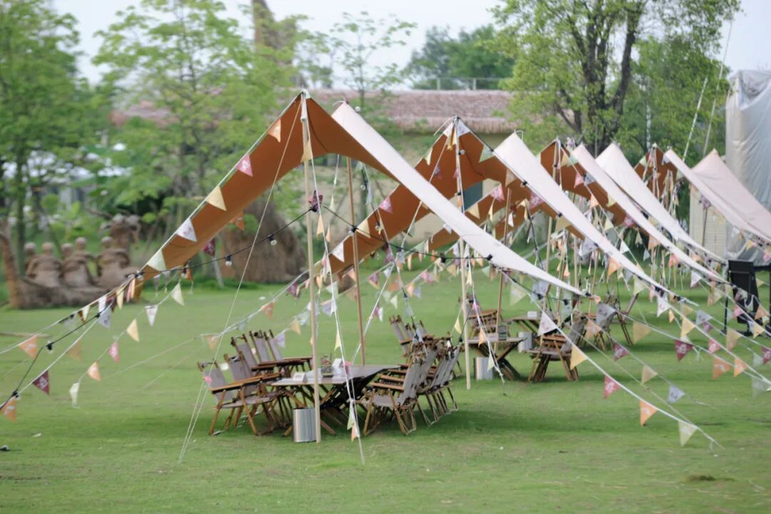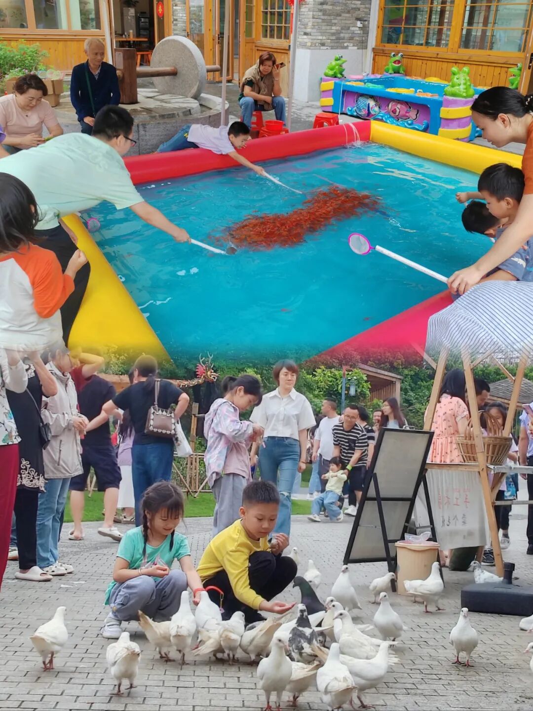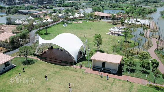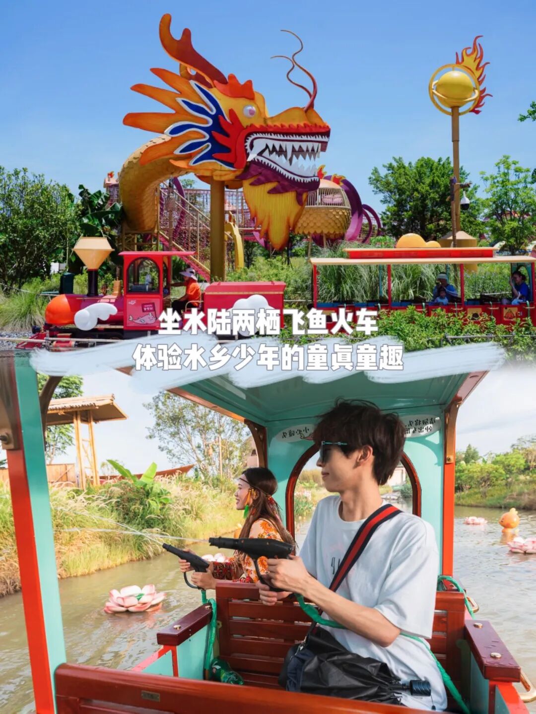 14:30 午休后,步行前往欢乐水乡(免门票入园),坐飞鱼火车环岛游童梦村,爬龙之舞,在时光草坪的微波露营公园享用精致的下午茶,陪孩子玩放风筝,扔飞盘等户外游戏。