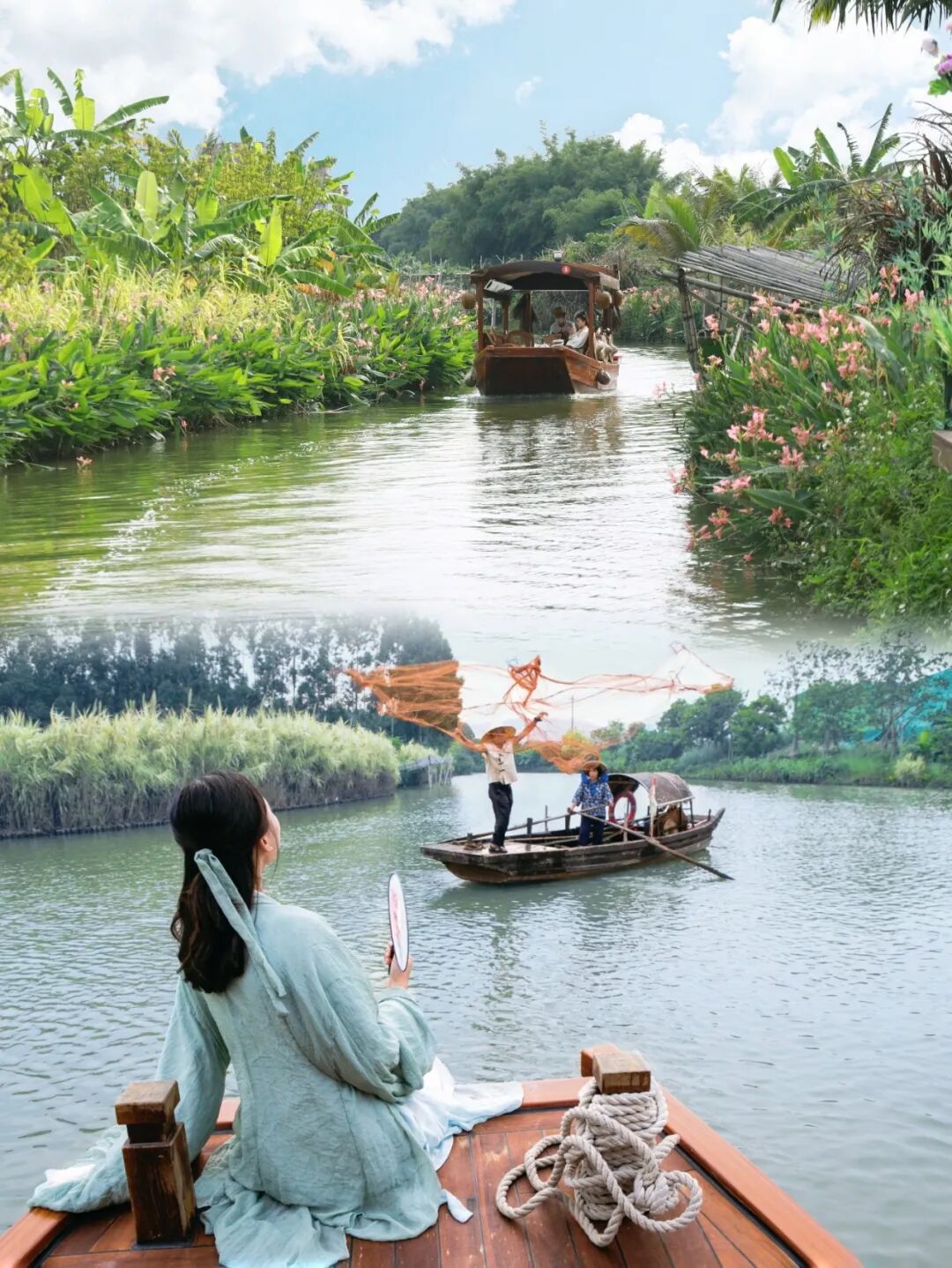 抵达游客中心后,在游船码头坐“横海泛舟”游船漫游6公里,舟移景异,体验“船在画中走,人在画中游”的岭南水乡风光。