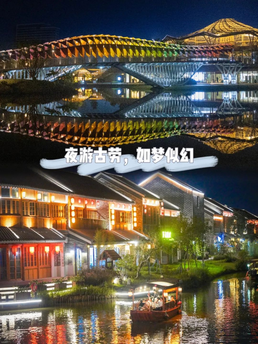 古劳水乡旅游区游客中心码头坐“龙溪摆渡”夜游看景区璀璨夜色。