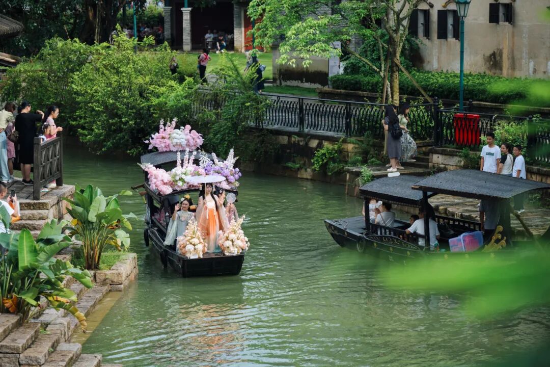 花式摇橹船,在赤坎来一场1926老赤坎的民国穿越体验,清汉女与留洋大小姐随机共邀游客登船感受岭南水乡的独特风情。