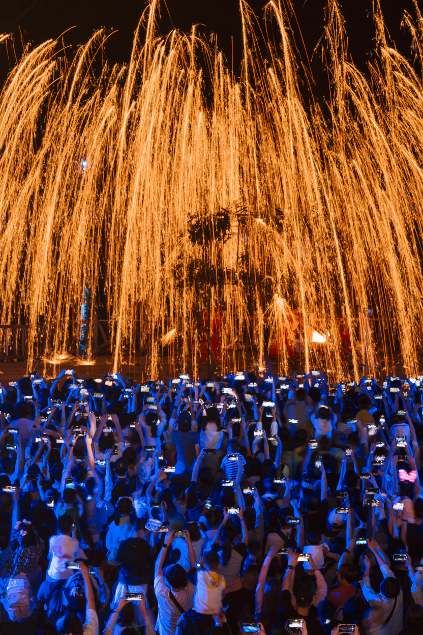 夜晚更有升级版非遗打铁花带来全新的视觉享受,360°陆上+180°水上观赏体验,点亮金墟之夜。