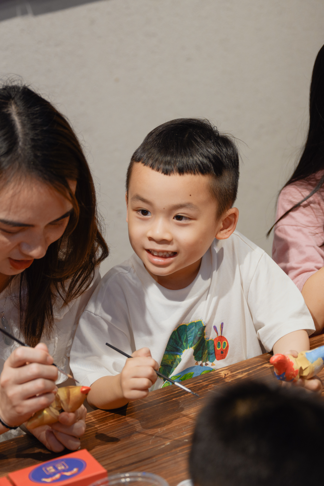第三步,体验亲子研学,在地非遗项目DIY活动。粽子、烘培、点心等DIY项目,更有镇濠泥鸡、香囊等手作体验,完成即可获得主题礼盒+官方证书。