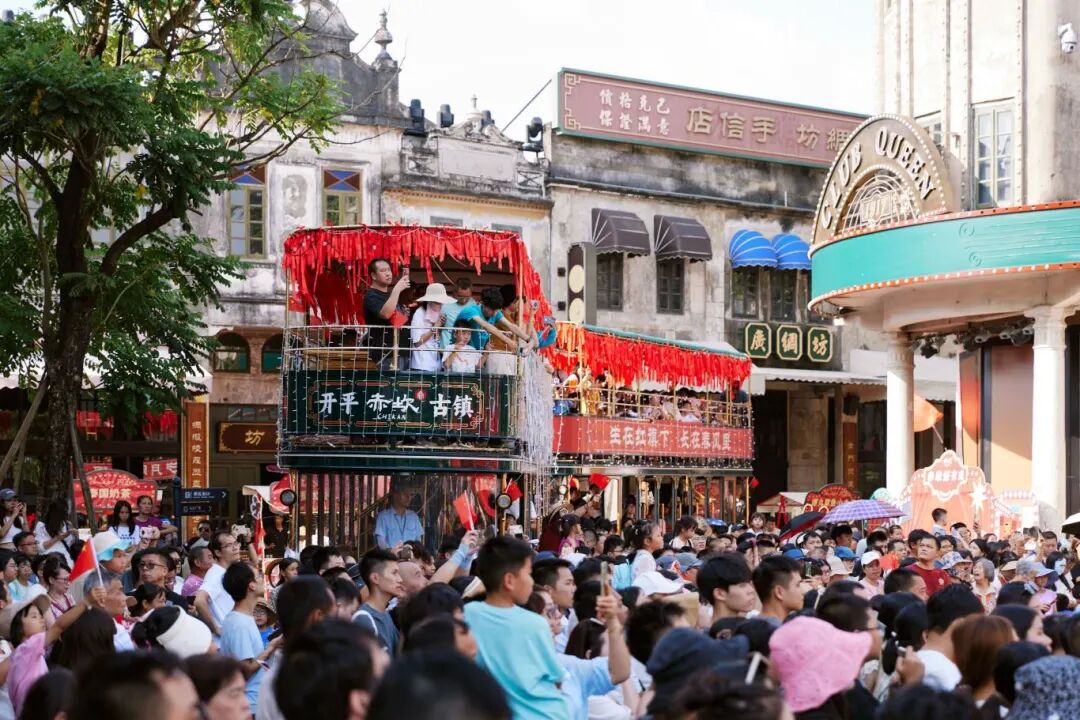 赤坎华侨古镇的侨乡古骑楼建筑群非常值得打卡,在这里,你可以乘坐游船感受人在画中游的意境,乘坐一趟“穿越”古镇时光的铛铛车,观看沿途的亭台楼阁,湖水环绕。晚上在古镇内沉浸体验各式非遗表演的魅力,漫步古镇,放松身心。