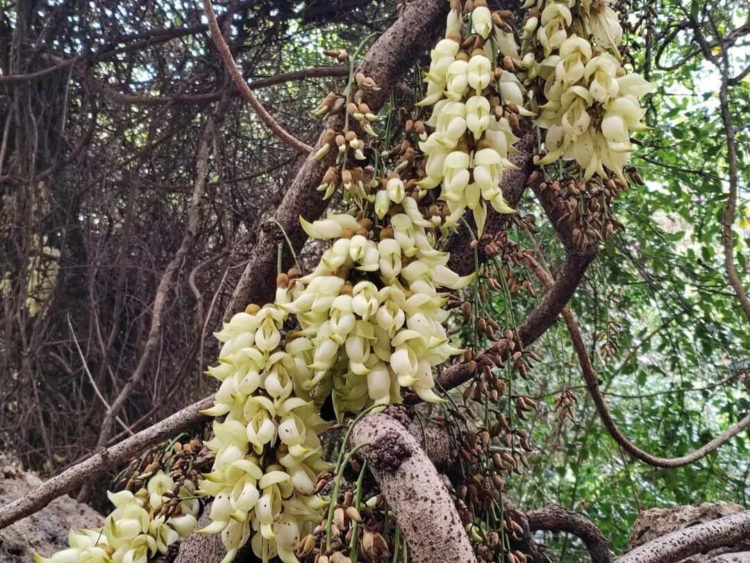禾雀花垂挂在花廊上,花形玲珑可爱