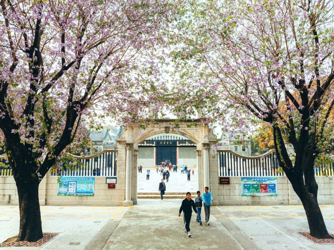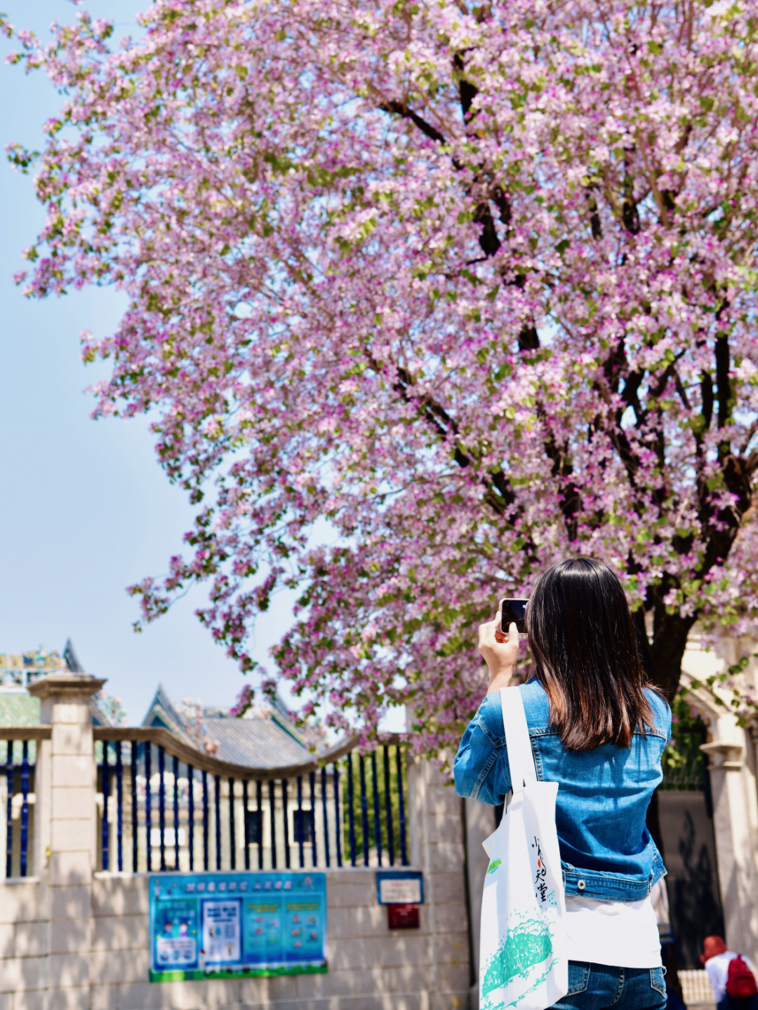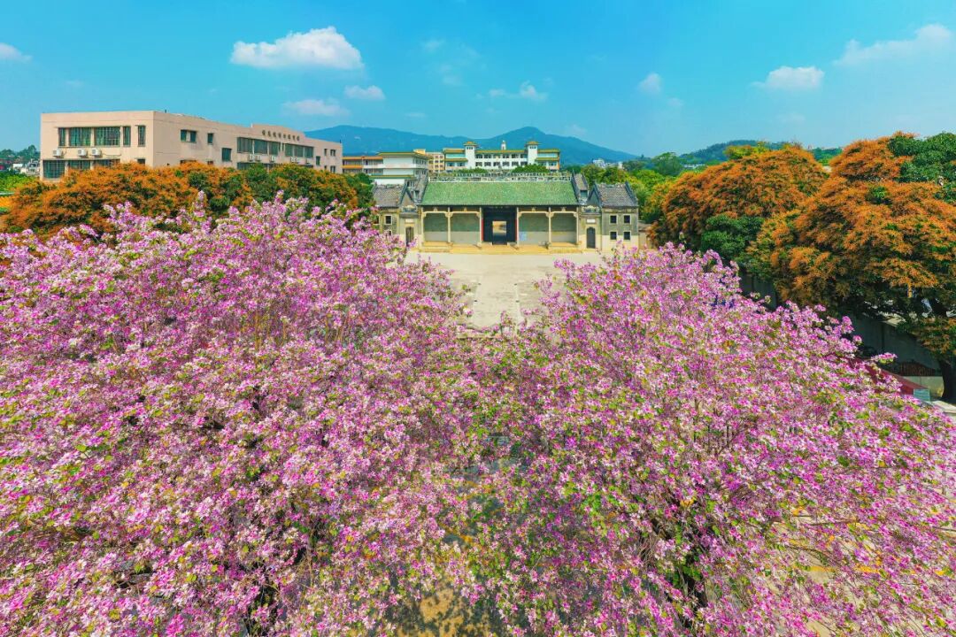 新会一中和新会书院附近,宫粉紫荆满树繁花。郭永乐 摄