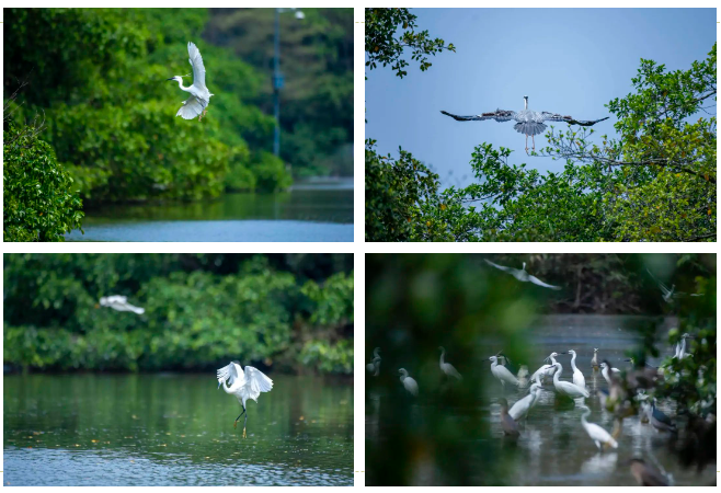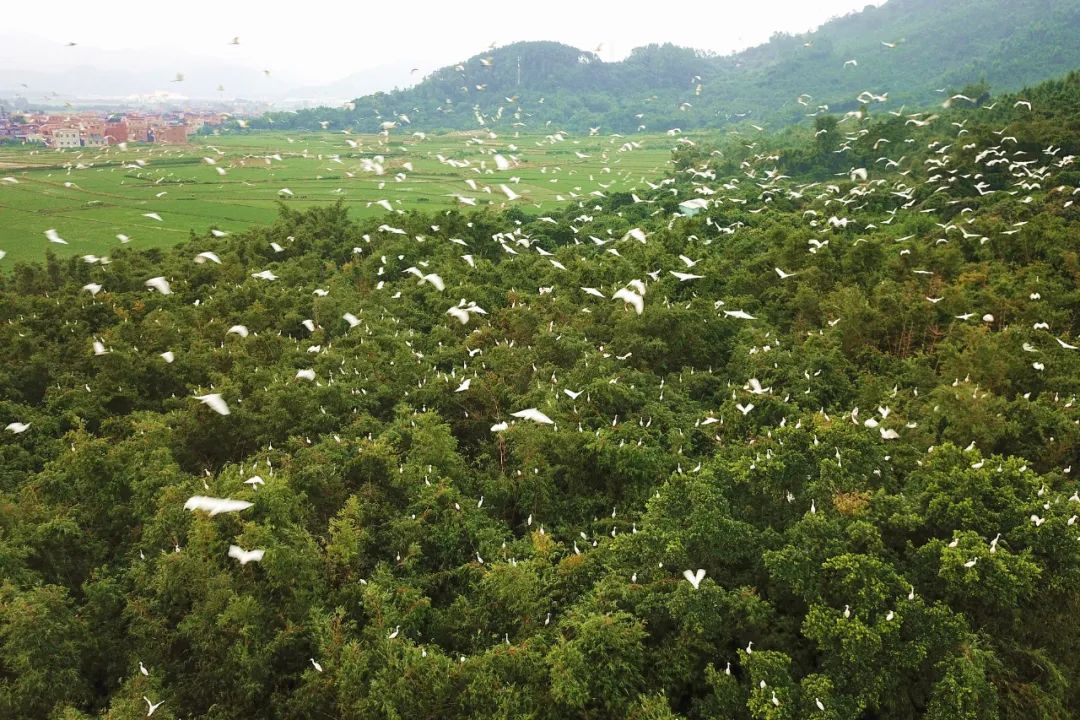 成百上千只白鹭在此安家、觅食、繁育后代,