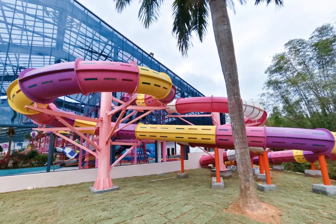你可以在款式多样的水上滑梯上尽情冲刺,
