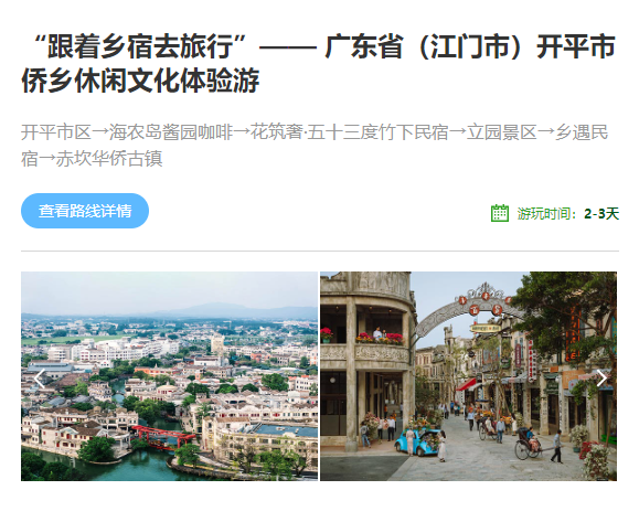 “开平市侨乡休闲文化体验游”线路