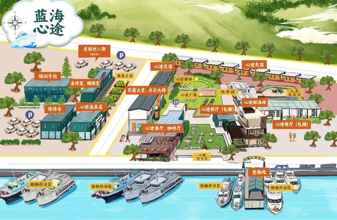 蓝海心途是江门市明润休闲渔业船舶管理有限公司打造的“海上游艇+文旅度假”复合型消费场景,集远海海钓、游艇度假、渔港休闲、现代茶咖、特色餐饮及渔获电商于一体,已建成心途海钓餐厅、心途海钓咖啡厅、心途海钓民宿、海钓专业渔具店、休闲露营地和专业会议室等。