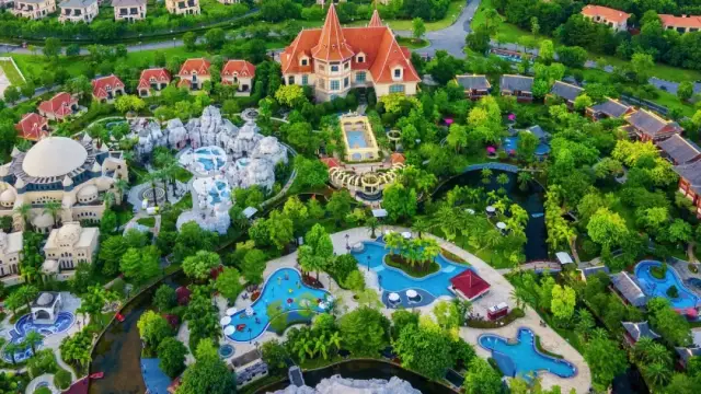 恩平温泉王国荟萃泰国、日本、芬兰、意大利、土耳其五国温泉特色,这里自带三大天然小苏打泉眼,富含多种微量元素,可以有效消除疲惫等。