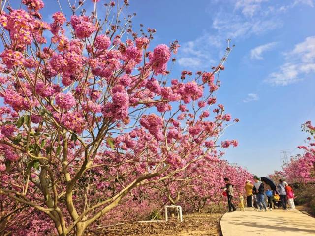 目前,成片的紫花风铃木