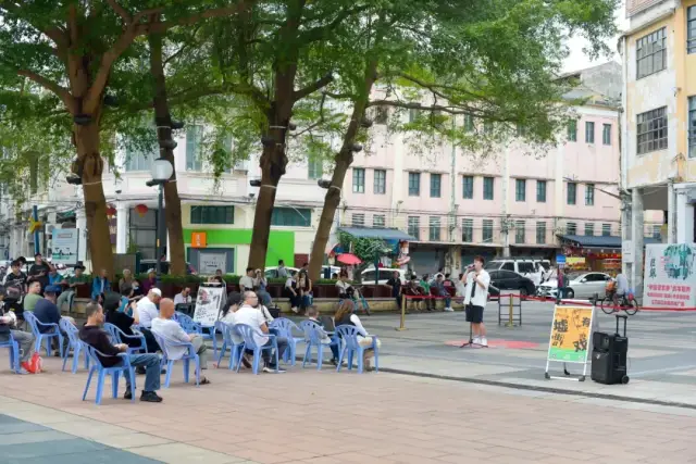 首曲《夏日倾情》以其轻快而深情的旋律瞬间吸引了市民游客驻足聆听。歌手饱含情感的演绎,仿佛将观众带回了那个充满阳光与激情的夏日,空气中弥漫着青春的气息和甜蜜的回忆。紧接着,《当年情》《风继续吹》《笑看风云》熟悉的旋律勾起了人们对粤语歌曲的怀旧情愫。