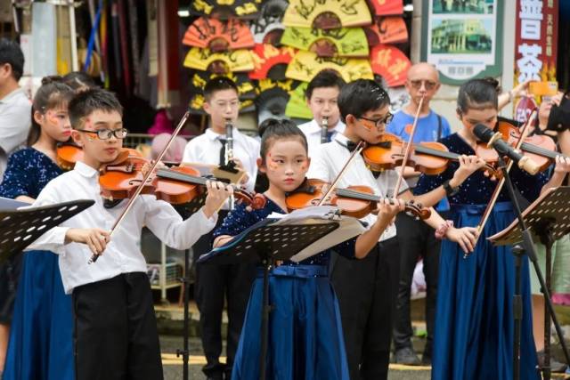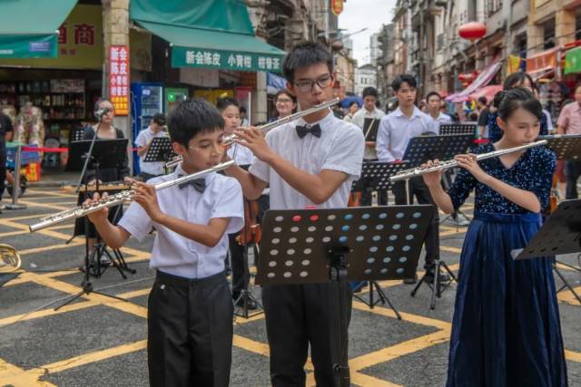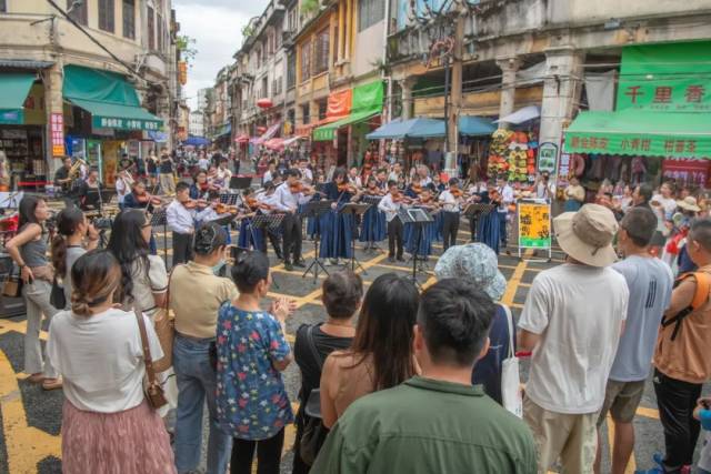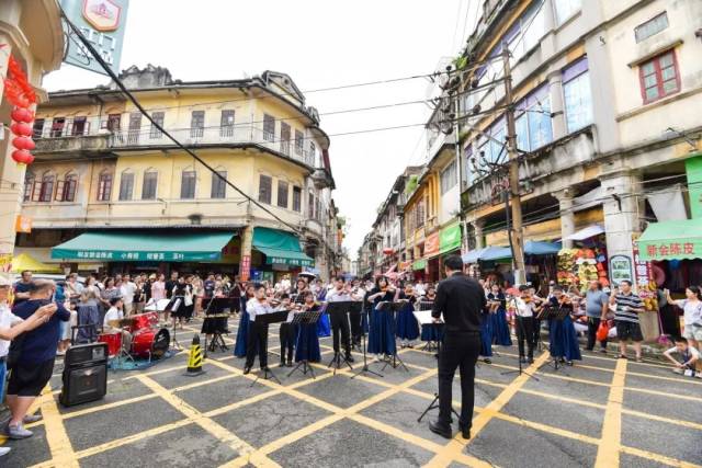7月12日午后,江门长堤历史文化街区,百年骑楼静静矗立。一场由江门市文化广电旅游体育局指导、江门市文化馆精心策划的“江门三点三精彩之旅•墟街有戏”器乐演出 ,为古街注入了澎湃动力。