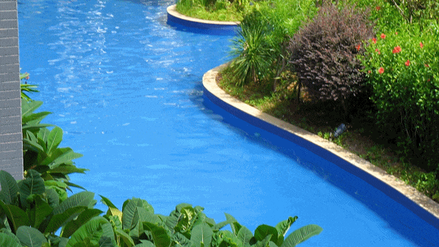 泳池水源取自天然山泉水,清澈见底。