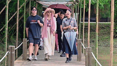 此外,他们还乘船观赏小鸟天堂,夕阳余晖洒在水面,成群鸟儿飞翔盘旋,构成一幅美丽的生态画卷。丹麦博主欧珠丽兴奋地举起相机,记录下这一壮观景象。“我从未见过如此多的鸟群,它们自由自在地生活在这里,仿佛置身于童话世界。”