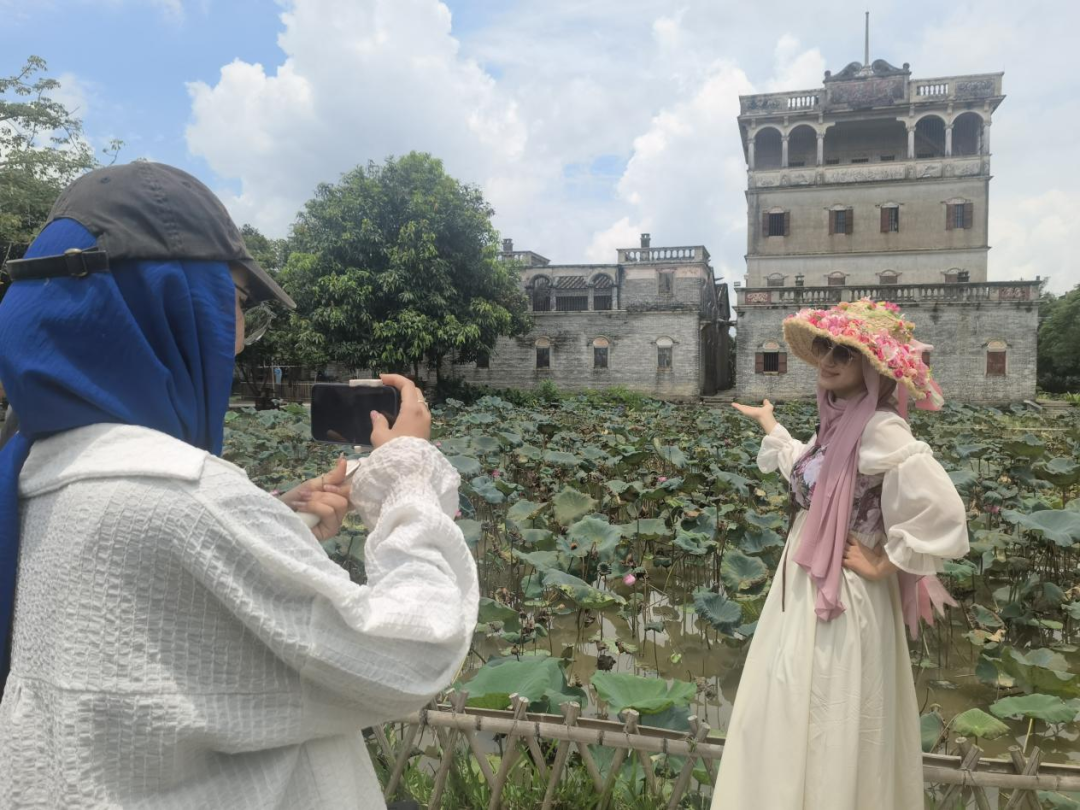伊朗博主玛雅登上铭石楼,俯瞰周围的田园风光,仿佛穿越回了那个年代。她仔细观察着碉楼的建筑结构,墙上的枪眼、坚固的铁门,都让她感受到了当时华侨们的智慧和勇气。“这些碉楼太有特色了,它们不仅是建筑艺术品,更是华侨历史的见证。”此外,博主们还在开平碉楼自力村跟马冈鹅体验“现实版的抓大鹅”,惊喜不断!