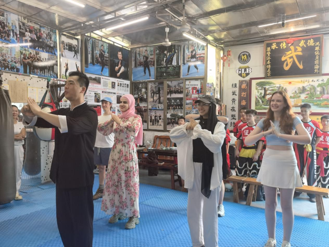 本次行程中,非遗体验让博主们流连忘返。咏春拳体验现场,在偏身咏春拳非遗传承人冯家辉的指导下,博主们学习了咏春拳基本套路、击打木人桩、咏春双刀等。