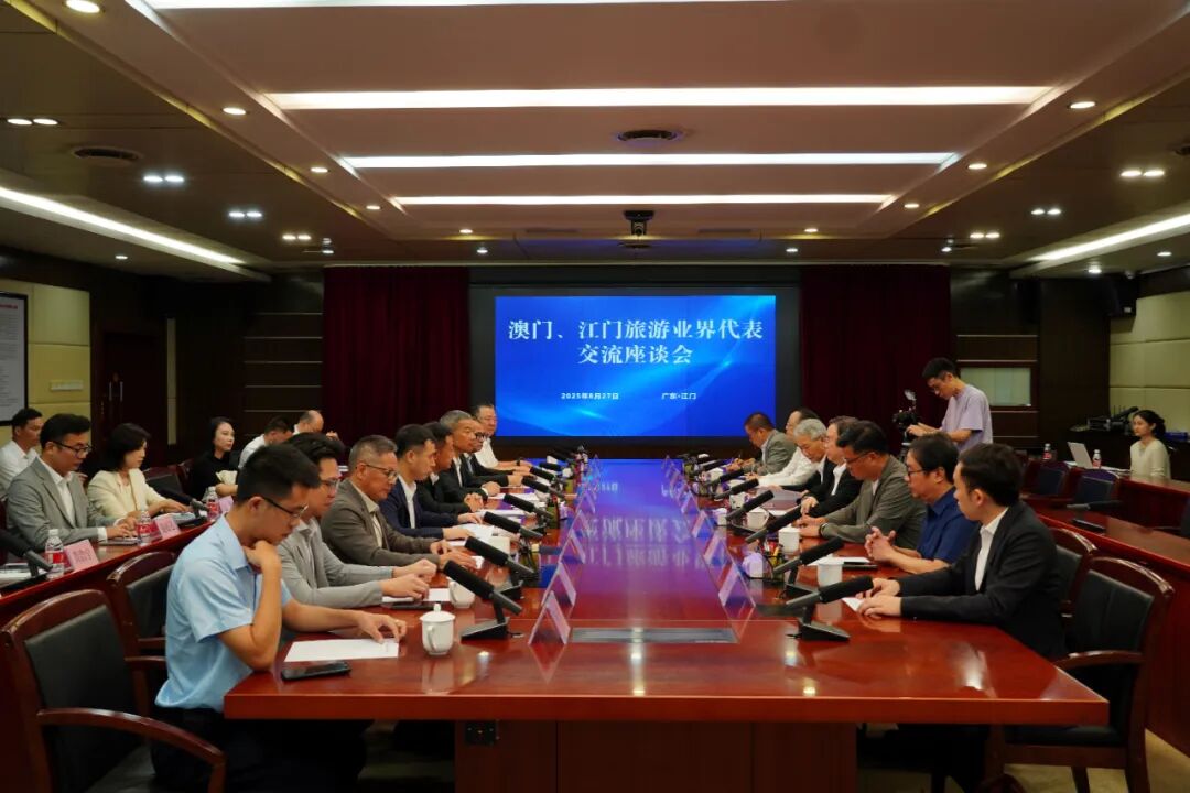 8月27日,澳门、江门旅游业界代表交流座谈会在我市举行,两地旅游业代表就深化江澳文旅交流合作进行座谈。副市长夏天出席会议。