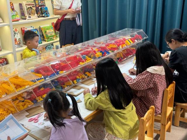 绘本讲读后,进入充满创意的手工制作环节。文化志愿者老师为每组家庭发放了手工“华容道”材料包,并详细讲解了传统益智游戏的历史背景与拼装技巧。亲子家庭分工协作,有的负责涂色描框,有的专注研究拼图布局,现场充满了欢声笑语。