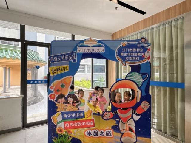 活动最后,亲子家庭在讲解员的带领下参观了江门市图书馆网络文明素养实践教育基地。作为广东省首批网络文明素养实践教育基地,江门市图书馆通过图文展板、互动屏幕等多种形式,系统展示了网络文明的重要性、网络谣言识别方法、个人信息保护技巧等内容。