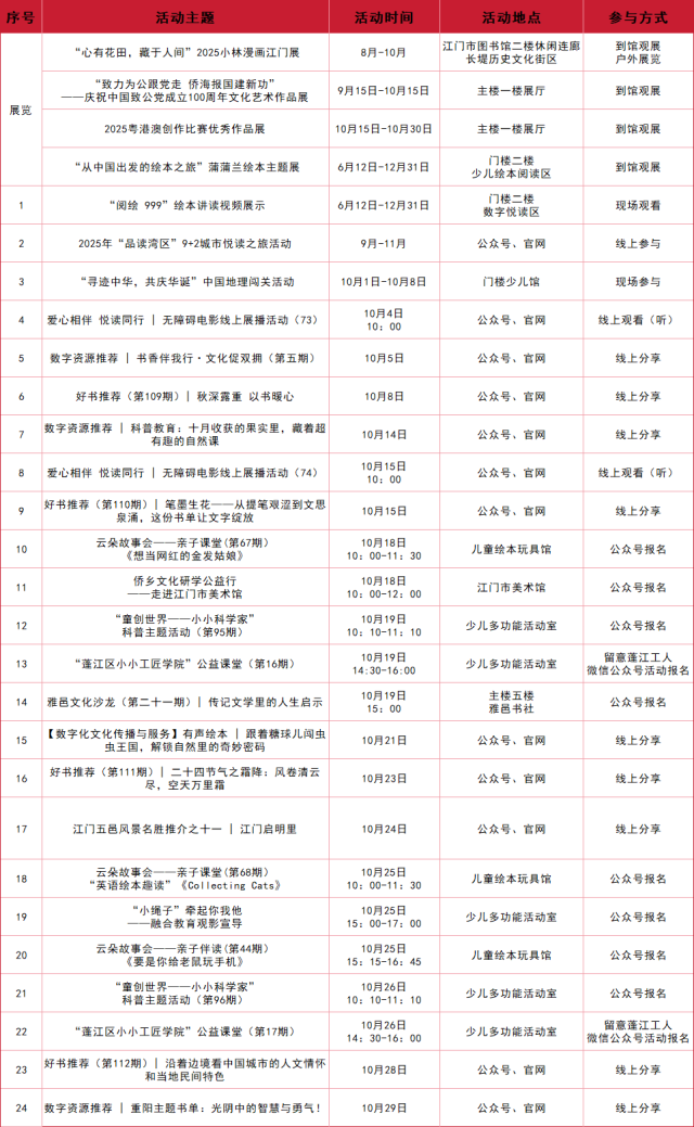 十月书韵,不负秋光 | 江门市图书馆十月文化活动
