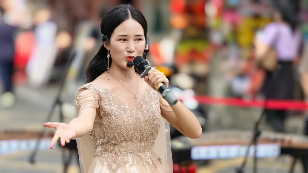 10月2日下午,“国风舞韵贺金秋”舞蹈专场接续精彩,为老街换上了翩跹的霓裳。演出在深情款款的《我和我的祖国》中拉开帷幕,舞者用肢体语言表达对祖国的真挚情感;《春述》以灵动的舞步描绘春回大地的生机勃勃;《钱鼓咚咚》将传统钱鼓与现代表演形式巧妙结合,节奏明快,引人入胜;《戏狮俏影》则融合了岭南醒狮元素,活泼俏皮,赢得满堂彩;《醉清波》以柔美的身段演绎水乡韵味,如诗如画;压轴节目《该我上场》充满青春活力,将现场气氛推向高潮。演出成为骑楼老街一道亮丽的风景线,围观的人群中不时传来“真美!”“太精彩了!”的低声赞叹。