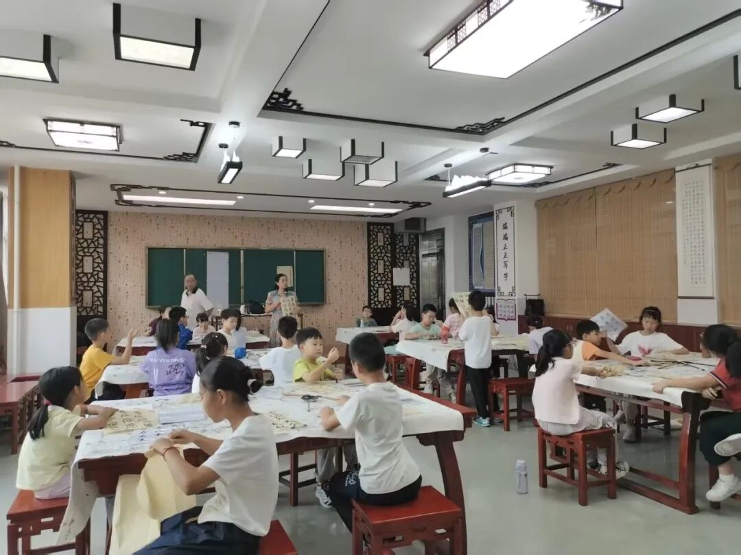 茅龙笔书法公益培训班则采取双师授课形式,由陈德云老师与学校书法班黄老师共同授课,将茅龙笔书法的书写技巧和学校特色书法课堂巧妙地糅合在一起。同学们在老师的讲解示范下探索茅龙笔的奇趣之旅,初步了解了茅龙笔的文化背景、形制类别及制作工艺流程等知识,面对如此独特的书写工具,大家都跃跃欲试!
