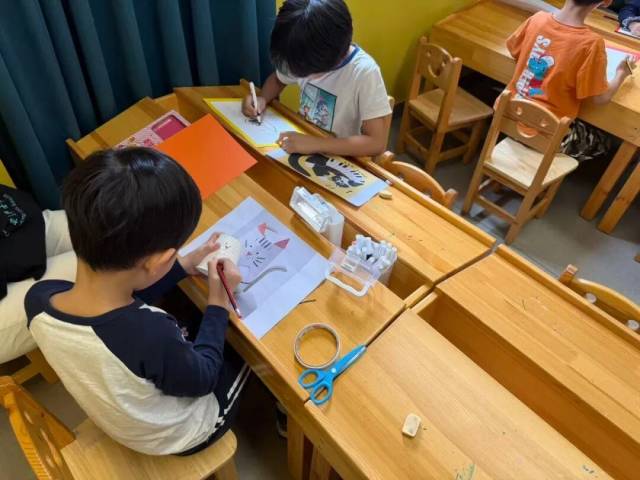 活动的最后一站是手工制作 ——“给好朋友的手绘信”。工作人员为每个家庭准备了彩笔、卡纸、剪刀和双面胶,孩子们立刻化身 “小小设计师”,迫不及待地开始创作。有的孩子用鲜艳的彩笔在卡纸上画出彩虹和太阳;有的孩子则剪出手拉手的小人,粘贴在信纸上,寓意着和好朋友的珍贵友谊;还有的孩子在家长的帮助下,折出漂亮的信封,将满满的心意装在里面。