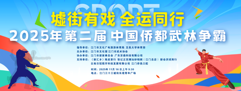 本届武林争霸的成功举办,是对“江门三点三精彩之旅”城市品牌的深度诠释,更是推动文旅体深度融合的生动实践。活动以武术为媒,让百年墟街焕发新的生机,让全运精神在侨乡大地扎根生长。这不仅是一场武林盛会,更是一次成功的文化传播——它展现了江门深厚的武术文化底蕴,传承了中华优秀传统文化,为第十五届全国运动会营造了积极向上、团结奋进的社会氛围,为江门文旅体融合和文化事业高质量发展增添了浓墨重彩的一笔。