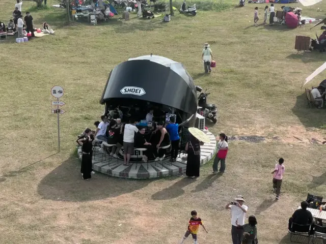 近日,公园草坪上出现了一个巨大的“超级头盔”。其实,这是一间咖啡店,充满趣味的造型吸引众多游人前来打卡,特别是摩托车发烧友们。目前,这里已经成为大鳌镇又一“网红”打卡点。