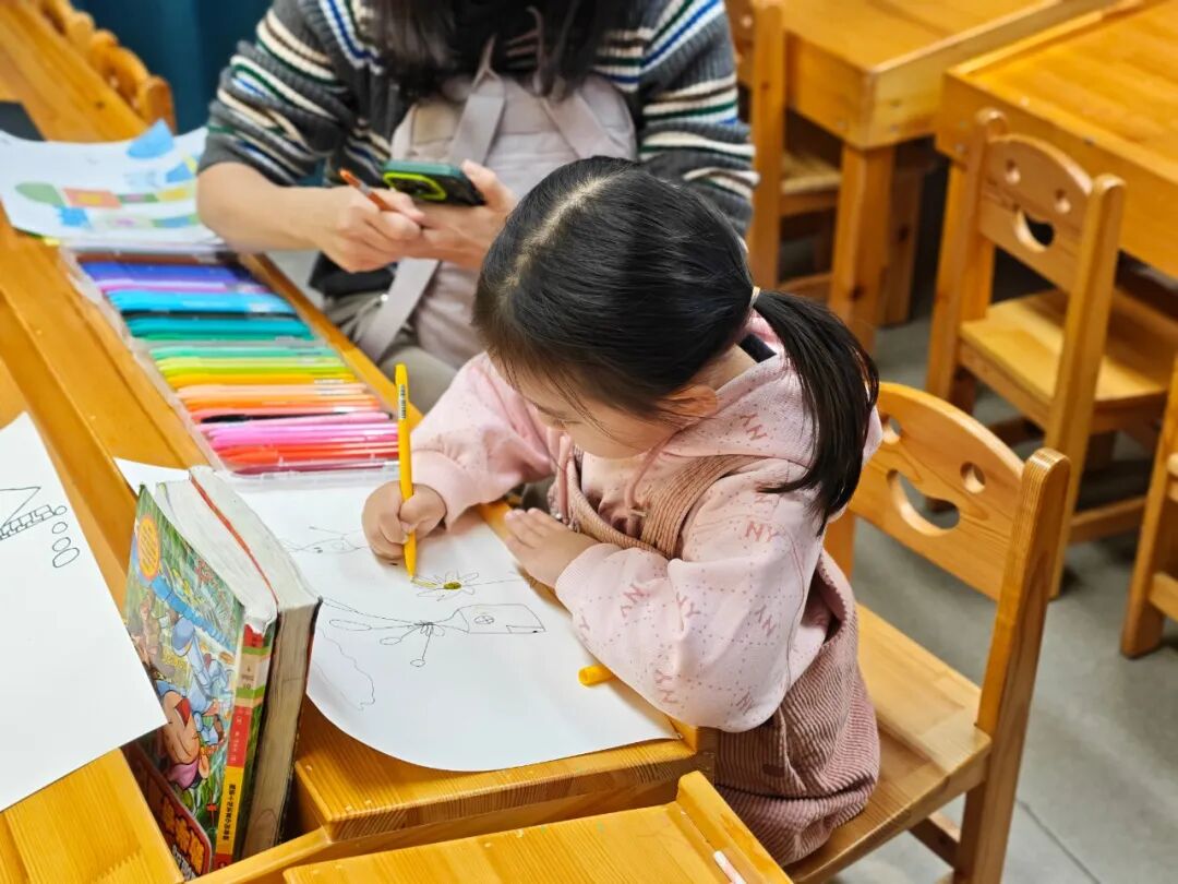 故事的余韵还未散去,创意的翅膀已然展开。在最后的亲子绘画环节,孩子们化身小小设计师,与爸爸妈妈共同执笔,描绘“我心中的大房子”。