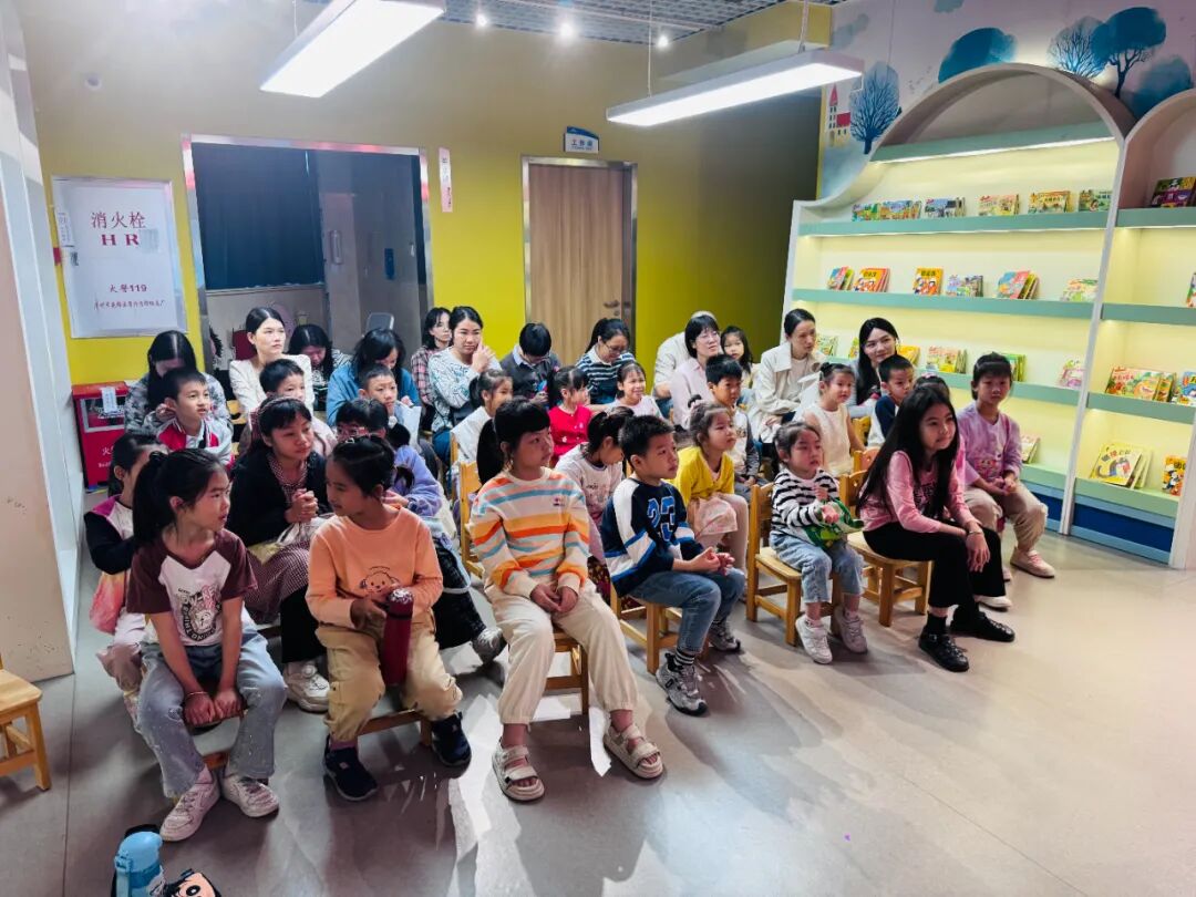 绘本里色彩鲜艳的画面、幽默的情节瞬间抓住孩子们的注意力:当讲到小动物们忍不住违背警告,喝了南瓜汤后身体变成橙色后悔不已时,孩子们时而瞪大好奇的眼睛,时而为小动物的“小失误”发出阵阵笑声;家长们则借着故事细节,轻声与孩子交流 “你看,不遵守规则会有这样的后果哦”,让规则意识在亲子互动中悄悄萌芽。