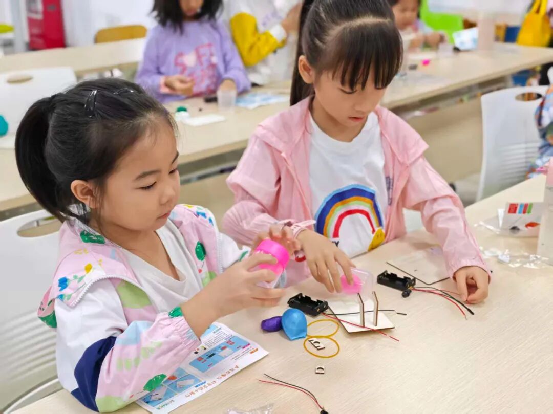 “童创世界——小小科学家”第99期活动以声学三要素为核心,通过一系列生活化实验让抽象知识具象化:音叉入水溅起的水花,直观展现声音的振动本质;拉皮筋时的响度变化、自制声波仪上跳动的光斑,让孩子亲手触摸声学原理;不同样式的瓷碗,更在敲击下奏响简易旋律,解锁音调的奥秘。亲子在默契协作中,不仅收获了科学知识,更增进了互动情谊。