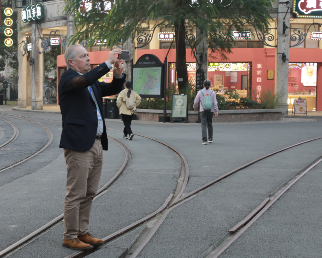 在赤坎华侨古镇,在工作人员的带领下,葡萄牙旅行商团坐上铛铛车穿梭于古镇的骑楼街巷,在欣赏充满艺术人文气息的特色建筑之余,共同观看了《归途》《火秀》等精彩演艺,沉浸式触摸侨乡文化的“温度”。
