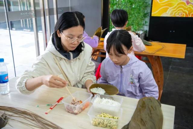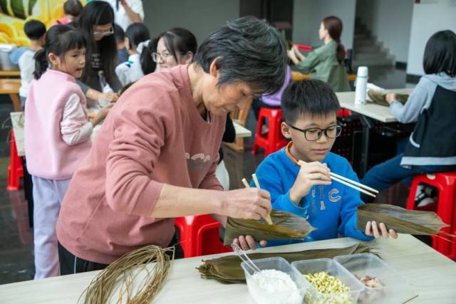 亲子互动制作柴火粽
