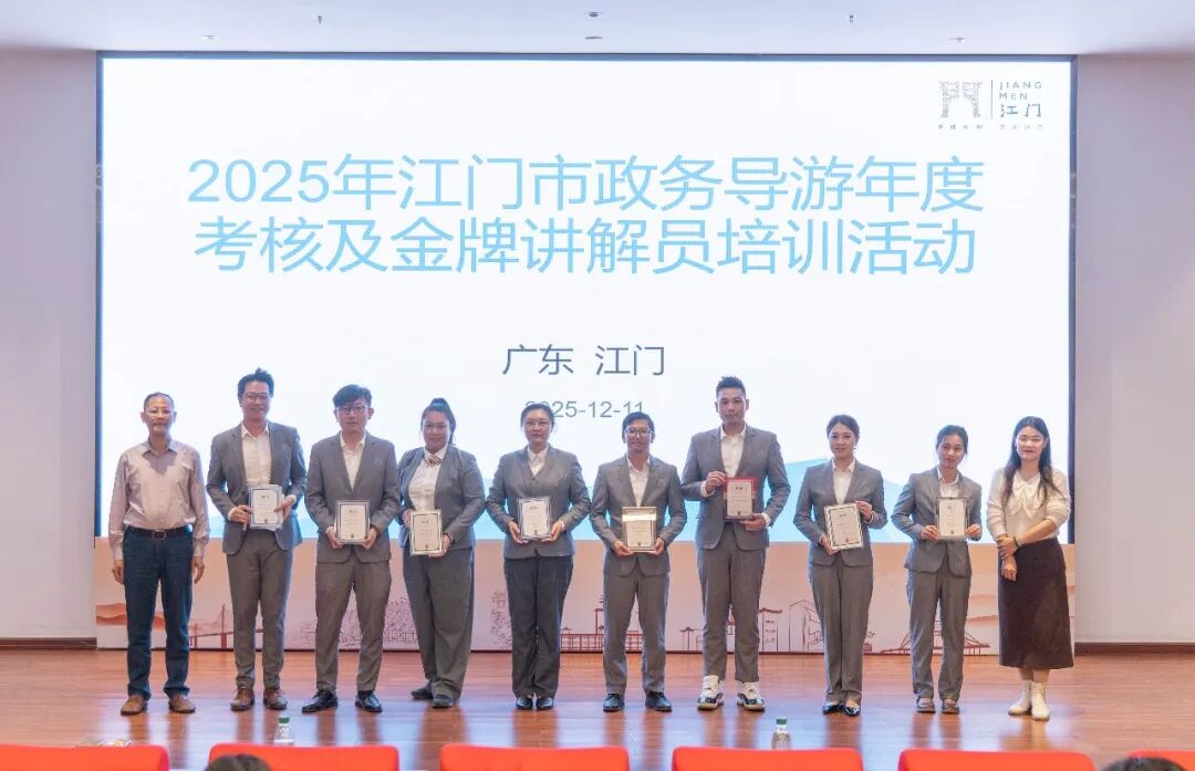 值得一提的是,在证书颁发仪式上,一批表现优异的讲解员被授予江门市2024至2025年度“金牌讲解员”称号;同时,新一批政务导游员获颁2026年度聘书,星级政务导游员名单也得以更新。这份荣誉既是对过往成绩的肯定,更是对未来责任的赋予。