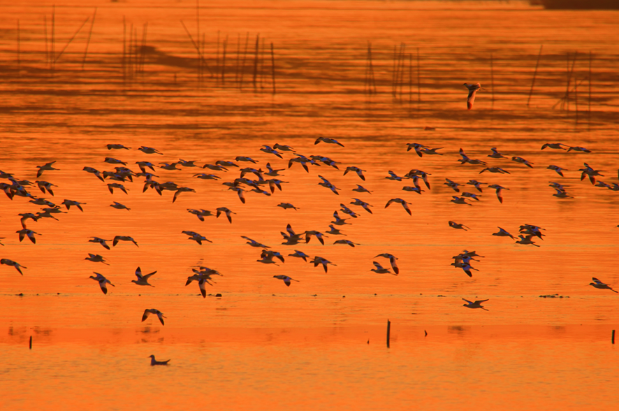 银湖湾滨海新区作为珠江西岸重要湿地系统之一,拥有广阔的红树林生态群落,是多种候鸟的“迁徙中转站”和“繁育地”。碧波荡漾之间,黑翅长脚鹬、反嘴鹬、白鹭、琵嘴鸭、斑嘴鸭等130多种鸟类在此繁衍生息,每年冬春之际形成“千鸟起舞”的自然奇观。
