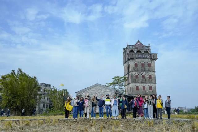 开平自力村碉楼群是广东唯一世界文化遗产——开平碉楼与村落的组成部分,不少碉楼内仍保存着完整的家具、生活设施、生产用具和日常生活用品,一砖一瓦都承载着华侨“走出去”与“回家来”的历史记忆。在这里,法国旅行商欣赏了建于20世纪二三十年代的精美碉楼,用镜头记录自然田园环境和众多碉楼、居庐相映成趣的画面。