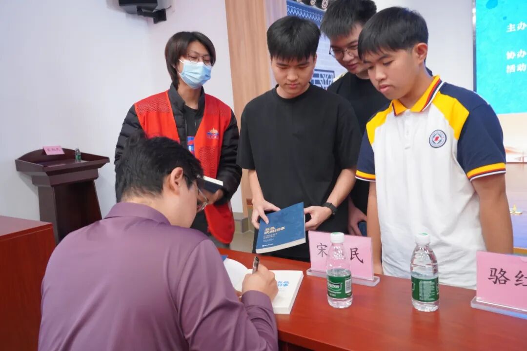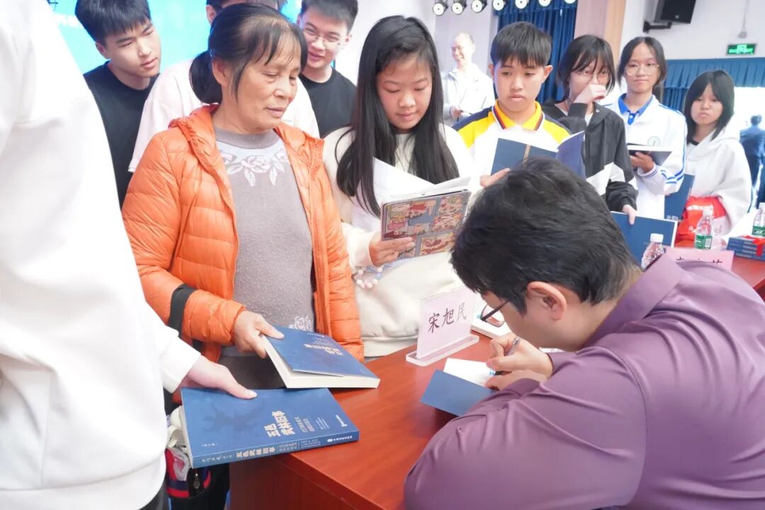 赠书环节温情涌动,暖意融融。宋旭民教授与政协文史委陈健威主任携手,共同向江门市8家公共图书馆捐赠《五邑武林旧事:江门部分武术流派口述史》。一本本图书,既是侨乡武术文化的珍贵载体,更是文化传承的接力棒,将为更多读者打开了解本土武学文脉的窗口。随后,宋教授又为现场嘉宾及市民读者逐一签赠。拿到签名图书的读者们满心欢喜,小心翼翼地珍藏这份特殊的文化馈赠,现场弥漫着书香与温情交织的氛围。这一赠一签,让书本成为联结作者与读者、传承与传播的坚实桥梁,更让流淌在字里行间的侨乡武术精神与文化底蕴广泛传递,让文心武韵的种子在更多人心中扎根、发芽、生长。