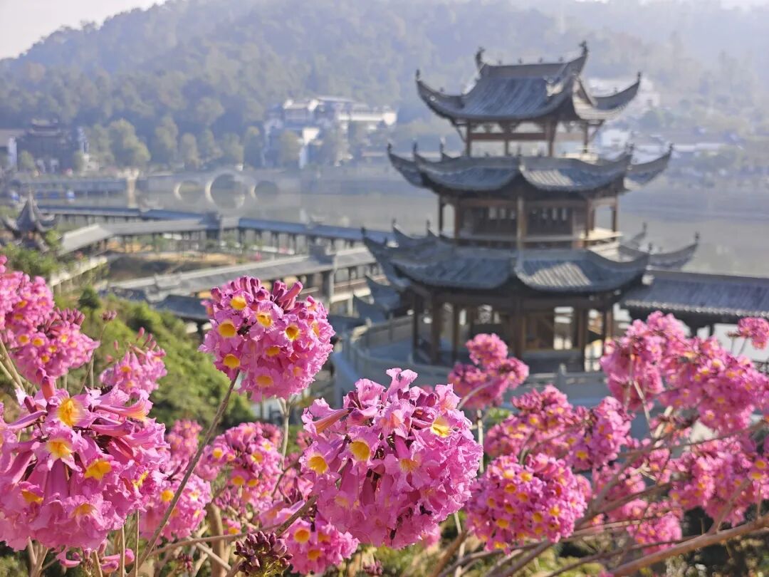 紫花风铃木已相继盛放,