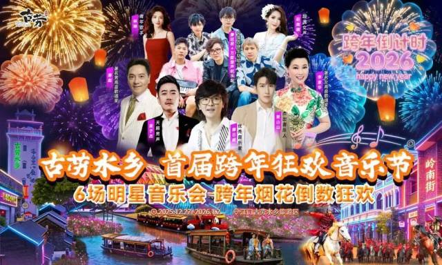2025年12月30日至2026年1月1日,鹤山古劳水乡旅游区将举办“群星音乐分享,跨年烟花狂欢”——古劳水乡首届跨年狂欢音乐节。活动融合水乡风情与潮流元素,设置了6场明星演唱会、跨年烟花电音倒数狂欢、千盏孔明灯点亮夜空、非遗英歌舞震撼登场、大型马战实景剧等内容,精彩不重样,点燃跨年热情。现场同步设置水乡文创市集、特色小吃区,打造“视听盛宴+沉浸体验”场景。活动为市民游客送上别样跨年祝福,丰富文旅生活的同时,进一步带动水乡文旅消费升温。