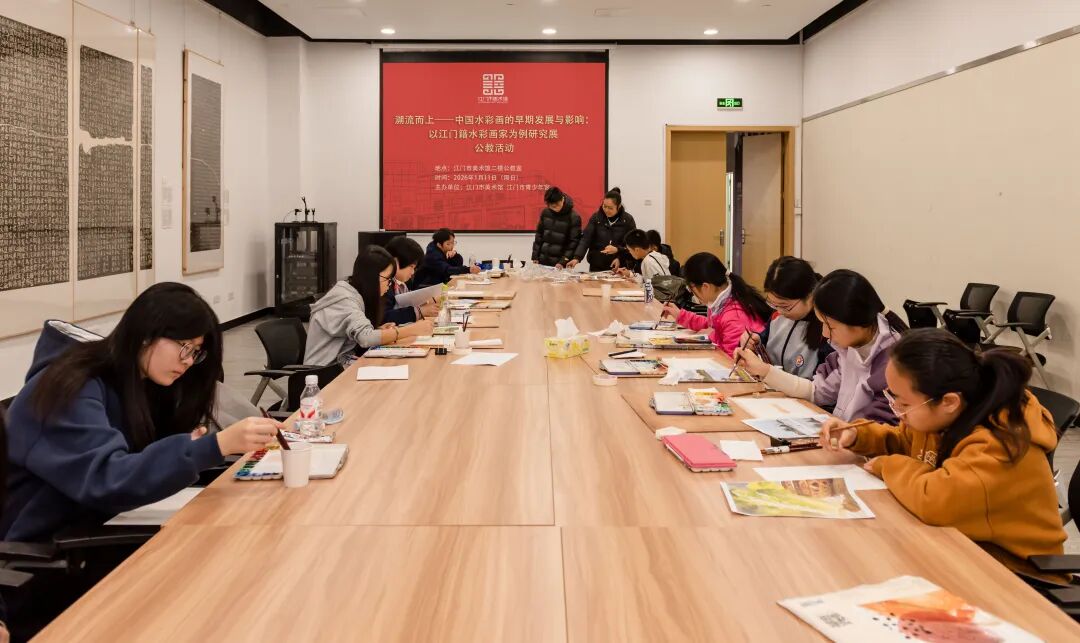 江门市美术馆协同江门市青少年宫于2026年1月11日举办美育实践活动,本次公教活动以 “溯流而上——中国水彩画的早期发展与影响:以江门籍水彩画家为例研究展” 展览内容为思考原点,以文化赋能公共服务高质量发展,培育和践行社会主义核心价值观为中心。