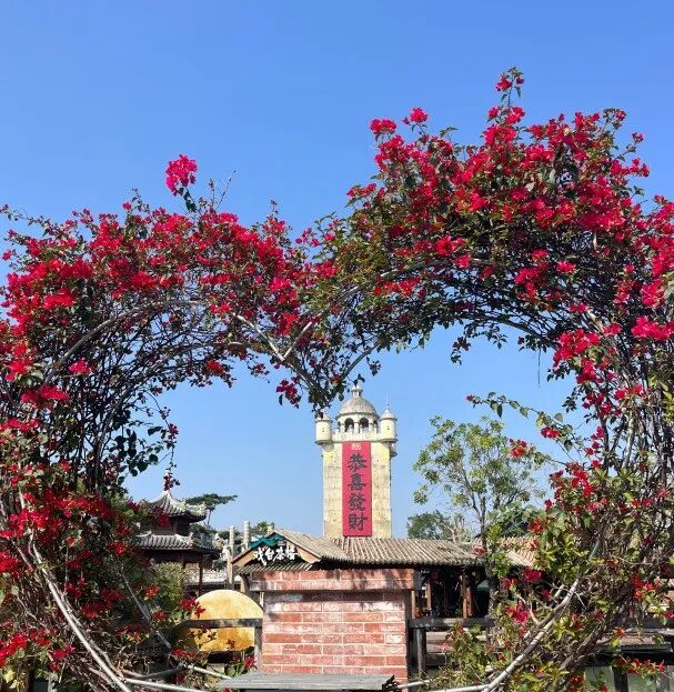 近日,持续的晴好天气让开平的暖冬绿意盎然。赤坎华侨古镇里三角梅、炮仗花、铁冬青等花木竞相绽放,绚丽繁花与古朴的碉楼、骑楼相映成趣,勾勒出侨乡独有的冬日浪漫,更成为游客逃离喧嚣、享受慢生活的治愈之地。