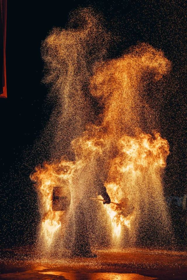 在楼顶复刻电影《让子弹飞》中的经典场景。